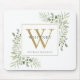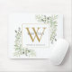 Elegant Gold Monogram Floral Greenery Mouse Pad