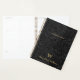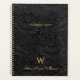 Elegant vintage black floral botanical pattern planner with a custom monogram in gold classic san serif typography and name in gold modern script typography.