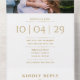 An elegant minimalist all in one wedding invitation featuring your photo, special date and wedding details set in classic, chic gold typography. The invitation includes a perforated RSVP card that’s can be individually addressed or left blank for you to handwrite your guest's address details. Designed by Thisisnotme©
