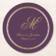 Elegant Gold Monogram Script Plum Purple Wedding Round Paper Coaster