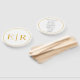 Elegant wedding program hand fans with your monogram in faux gold and your details in italics over a white background. These hand fans will provide your guests with the order of service and are perfect for an outdoor wedding.