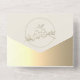 Elegant, modern, minimalist gold all-in-one wedding invitation with monogram - initials of bride and groom, simple calligraphy script and custom picture of the couple at the back.