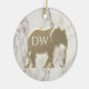 Classy, elegant marble and gold elephant silhouette Christmas ornament with initials at the front and custom text at the back side.