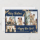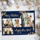 Elegant Gold Navy 4 Photo Collage Christmas Card