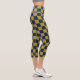 Elegant Gold & Navy Blue Chequered Pattern Capri Leggings