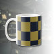 Elegant Gold & Navy Blue Chequered Pattern Coffee Mug