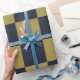 Elegant Gold & Navy Blue Chequered Pattern Wrapping Paper