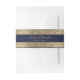 Elegant Gold Navy Blue Floral Roses Script Wedding Invitation Belly Band