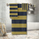 Elegant Gold & Navy Blue Vertical Stripes Bath Towel Set