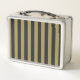 Elegant Gold & Navy Blue Vertical Stripes Metal Lunch Box
