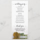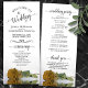 This beautiful wedding program features an elegant design with a single long stemmed gold ochre, goldenrod, or mustard yellow coloured rose lying on its side reflecting in water. The titles are written in fancy script calligraphy, and there is space for your ceremony and wedding party details, as well as a short thank you for your guests. Wonderful way to welcome your friends and family to your wedding celebration.