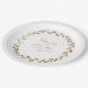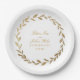 An elegant and traditional olive branch wreath wedding paper plate featuring your names inside a gold olive branch wreath with your numerical wedding date.