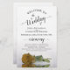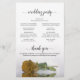 These wedding programs are elegant and tasteful, while still being budget friendly. The design features a single long-stemmed gold or yellow coloured rose lying on its side, reflecting in a pool of water with waves and ripples. The typography features lacy black script calligraphy, and there is room for details on the ceremony, the bridal party, and a short thank you.