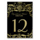 A beautiful and elegant table card with a gold glitter ornamental design. Great for weddings or any special occasion.