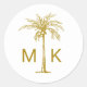 Elegant Gold Palm Tree Monogram Tropical Classic Round Sticker