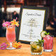 It's cocktail time! Announce your signature wedding drinks with this elegant black, gold and white tropical wedding design featuring modern script in black text including an artistic palm tree and metallic gold foil frame over a black background. Add your own special touch with your names, signature drink names and ingredients.