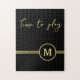 Elegant gold Personalised Monogram on black Jigsaw Puzzle