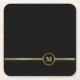 Elegant gold Personalised Monogram on black Square Paper Coaster
