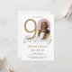 Elegant Gold Photo 90th Birthday Party Invitation. Elevate your milestone celebration with an invitation design that epitomises understated elegance and chic minimalism. Our black and gold theme exudes sophistication, creating a refined atmosphere for your special day. The custom photo feature adds a personalised touch, ensuring that each invitation is a unique and cherished memento. The simplicity of the design enhances its overall appeal, making a bold statement through clean lines and a tasteful blend of black and gold accents. Join us for a celebration where every detail is thoughtfully curated to reflect the beauty found in simplicity, creating memories that are as timeless as the occasion itself.