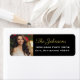Simple and elegant custom address label design features a senior photo of your graduate with gold and white return address text and black background. Colors can be customized.
