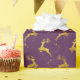 Classically elegant Christmas holiday gift wrap featuring a gold reindeer silhouette pattern over a deep purple background. Perfect decorative gift wrapping paper for all your holiday gifting.