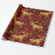 elegant gold reindeer red merry christmas pattern wrapping paper