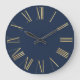 Elegant Gold Roman Numerals on Navy Blue Large Clock