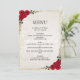 Add a touch of romance to your reception with this Luxury Red Roses Wedding Menu. Featuring elegant red roses framed with gold foil accents, it perfectly complements your wedding décor while highlighting your menu in style.