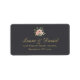 A sophisticated return address label featuring a rich black background adorned with delicate blush roses and refined gold accents. The elegant typography and classic floral detail add a polished finishing touch to your wedding envelopes and stationery.