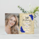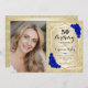 Elegant Gold Royal Blue Roses Photo 50th Birthday Invitation