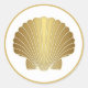 These round stickers feature an elegant gold scallop shell inside of a gold ring.