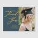 Elegant Gold Script Dusty Blue Minimalist Photo Graduation Thank You Magnetic Card. Give Wow 'Thanks' to your family and friends with this beautiful thank you card. All the texts are pre-arranged for you to personalise easily and quickly with your own words.