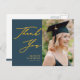 Elegant Gold Script Dusty Blue Minimalist Photo Graduation Thank You Postcard. Give Wow 'Thanks' to your family and friends with this beautiful thank you card. All the texts are pre-arranged for you to personalise easily and quickly with your own words.