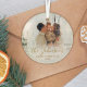 Elegant Gold Hand Lettered "Merry Christmas" Script Family Photo Ornament. Features your favourite family photo, "family name" calligraphy text in handwritten script, with Merry Christmas text and year. Easy to personalise it. Photo tip: crop your photo to square form before upload it.