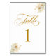 Elegant Gold Script Floral Wedding Table Number Set. Look no further for your perfect floral wedding table numbers to make your special day shine. Your wedding table numbers give guests a glimpse of your wedding theme, so make it count. You already have enough on your plate. No need to make any changes or edits to these table numbers. Just put them in your cart and you are all set to go. Get yours today!