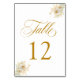 Elegant Gold Script Floral Wedding Table Number Set. Look no further for your perfect floral wedding table numbers to make your special day shine. Your wedding table numbers give guests a glimpse of your wedding theme, so make it count. You already have enough on your plate. No need to make any changes or edits to these table numbers. Just put them in your cart and you are all set to go. Get yours today!