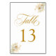 Elegant Gold Script Floral Wedding Table Number Set. Look no further for your perfect floral wedding table numbers to make your special day shine. Your wedding table numbers give guests a glimpse of your wedding theme, so make it count. You already have enough on your plate. No need to make any changes or edits to these table numbers. Just put them in your cart and you are all set to go. Get yours today!