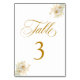 Elegant Gold Script Floral Wedding Table Number Set. Look no further for your perfect floral wedding table numbers to make your special day shine. Your wedding table numbers give guests a glimpse of your wedding theme, so make it count. You already have enough on your plate. No need to make any changes or edits to these table numbers. Just put them in your cart and you are all set to go. Get yours today!