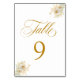 Elegant Gold Script Floral Wedding Table Number Set. Look no further for your perfect floral wedding table numbers to make your special day shine. Your wedding table numbers give guests a glimpse of your wedding theme, so make it count. You already have enough on your plate. No need to make any changes or edits to these table numbers. Just put them in your cart and you are all set to go. Get yours today!