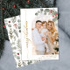 Elegant Winter Botanical Calligraphy Script 1 Photo Arch Christmas Cards. This festive modern one photo christmas cards features pretty photo arch decorated with pine branch, berries and eucalyptus leaves, a „Merry Christmas” greeting text which is written in a hand lettered swash tail font in gold and white. On the reverse side winter watercolor botanical foliage greenery, berries, eucalyptus leaves, pine needles and branches. This Custom Personalised Photo Christmas Cards are a great way to remind loved ones that you're thinking of them this Winter Holiday Season.