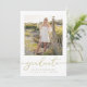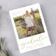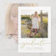 Celebrate your graduate with this elegant gold script graduation photo design featuring refined calligraphy typography and a customisable senior portrait layout. The sophisticated gold lettering paired with clean, modern styling creates a timeless look perfect for high school or college graduation celebrations. Personalise with your graduate’s photo and details to create a beautiful keepsake that friends and family will treasure for years to come.