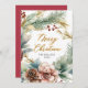 Modern Elegant Calligraphy Script Watercolor Botanical Greenery Wreath Christmas Non Photo Christmas Cards. This festive Christmas Holiday cards features a watercolor wreath with pine branches, red berries and pinecones. With a „Merry Christmas” greeting text which is written in a pretty airy hand lettered font script in gold. On the reverse side red background with pre-made message. This festive custom Christmas Cards are a great way to remind loved ones that you're thinking of them this Winter Holiday Season.