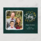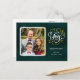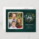 Elegant Gold Script JOY Green Christmas Photo Holiday Postcard