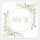 Elegant Gold Script Monogram Initials Greenery Square Sticker