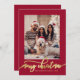 Elegant Gold Script One Photo Red Christmas Holiday Card