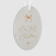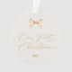 Commemorate your first Christmas together with this elegant ornament featuring refined gold script typography and a delicate watercolor bow. Set on a soft ivory background, it embodies timeless sophistication and warmth — perfect for newlyweds or couples celebrating a special milestone. A beautiful keepsake for your holiday tree or a thoughtful gift for loved ones.