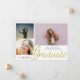 This trendy, fancy 2023 graduation announcement features a three-photo collage overlaid with an elegant script. The text Graduate is written with faux gold metallic letters with rhinestones (no real rhinestones or gold foil will be used). You can adjust the wording, and change the fonts as needed, both on the front and back of the card, to make this a simple graduation announcement or an elegant grad party invitation. Choose this stylish and classy graduation design for the class of 2024!