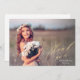 This elegant graduation thank you card features a full photo and elegant calligraphy. "Thank you" is written in pretty gold script in the lower right corner, with the graduate's name and graduation year below. The gold and white typography design overlays a full photo of the new graduate (horizontal/landscape orientation). The back is blank and can accommodate additional photos or a personalized note to recipients.