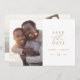 This elegant gold script photo save the date card is perfect for a simple wedding. The minimalist gold and white design features fancy romantic typography with modern glam style. Customisable in any colour. Keep the design minimal and classy, as is, or personalise it by adding your own graphics and artwork.