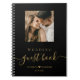 Elegant Script Heart Custom Personalised Photo Wedding Guest Book in black and gold. Features modern „guest book” text in hand lettered calligraphy, wedding date and couples first name wit love heart shape. Customise with your favourite photo and personalise your information. It great for wedding or anniversary day.